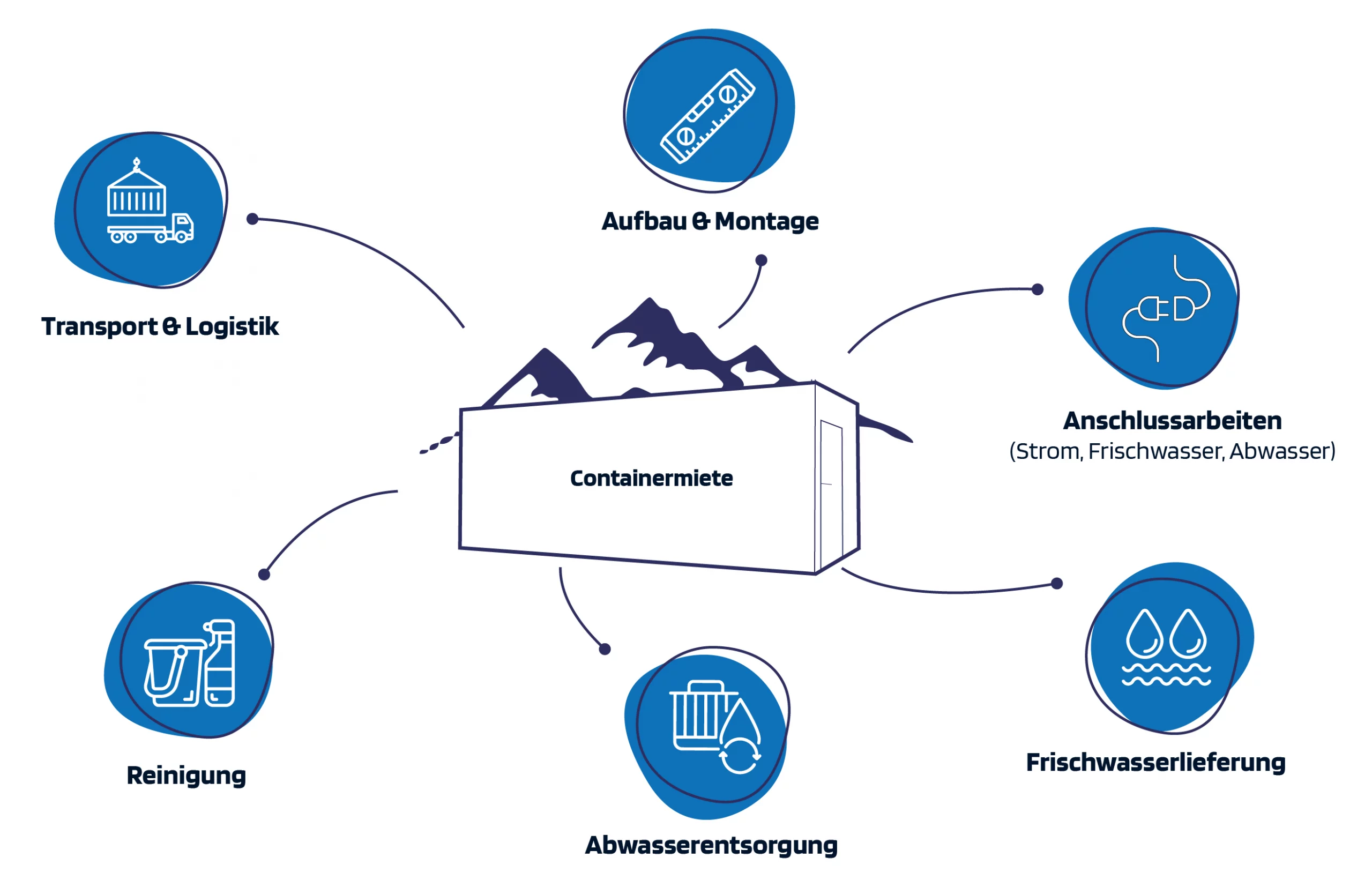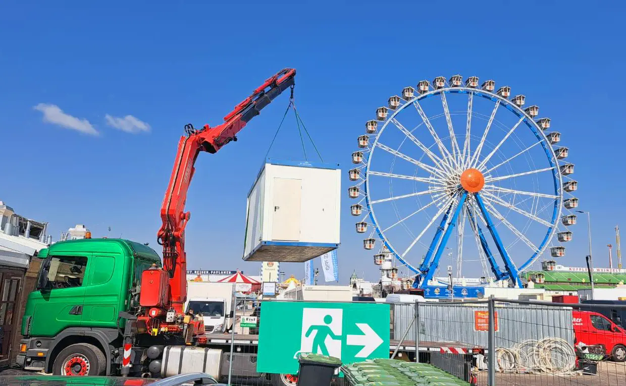Wenn Sie bei uns einen Container mieten, erhalten Sie alles aus einer Hand – von der Lieferung über die Frischwasserlogistik und Abwasserentsorgung bis hin zur regelmäßigen Unterhaltsreinigung.