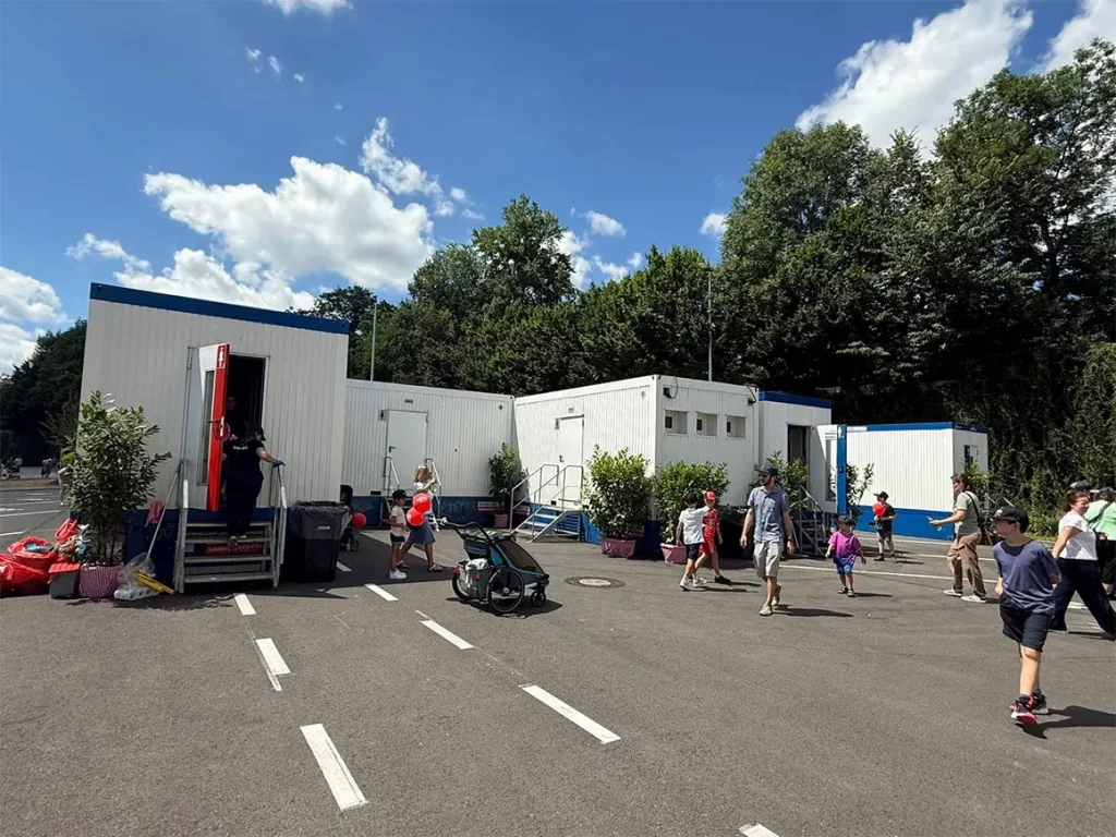 Sanitärcontainer sind die ideale Lösung, wenn vor Ort kurzfristig oder temporär zuverlässige, hygienische Sanitäreinrichtungen benötigt werden. So haben Menschen jederzeit Zugang zu WC-, Wasch- und Duschmöglichkeiten.